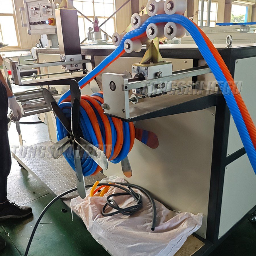 By equipped with vacuum pump and vacuum type mould, it can produce different use corrugated pipe with joint (wash basin drain pipe, air conditioner pipe, hookah pipe etc)